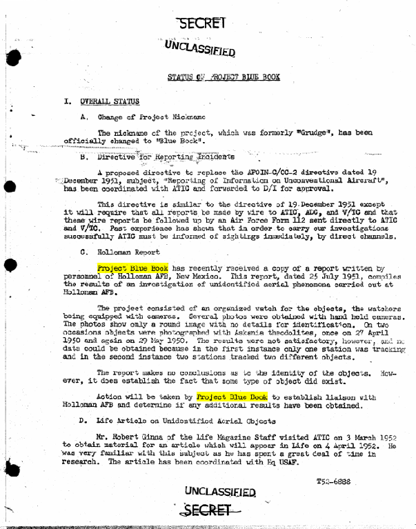 Blue Book was the third Air Force UFO study (after Project Sign in 1947 and Project Grudge in 1949). Its mission: (1) assess whether UFOs posed a threat to national security, and (2) scientifically analyze the data.